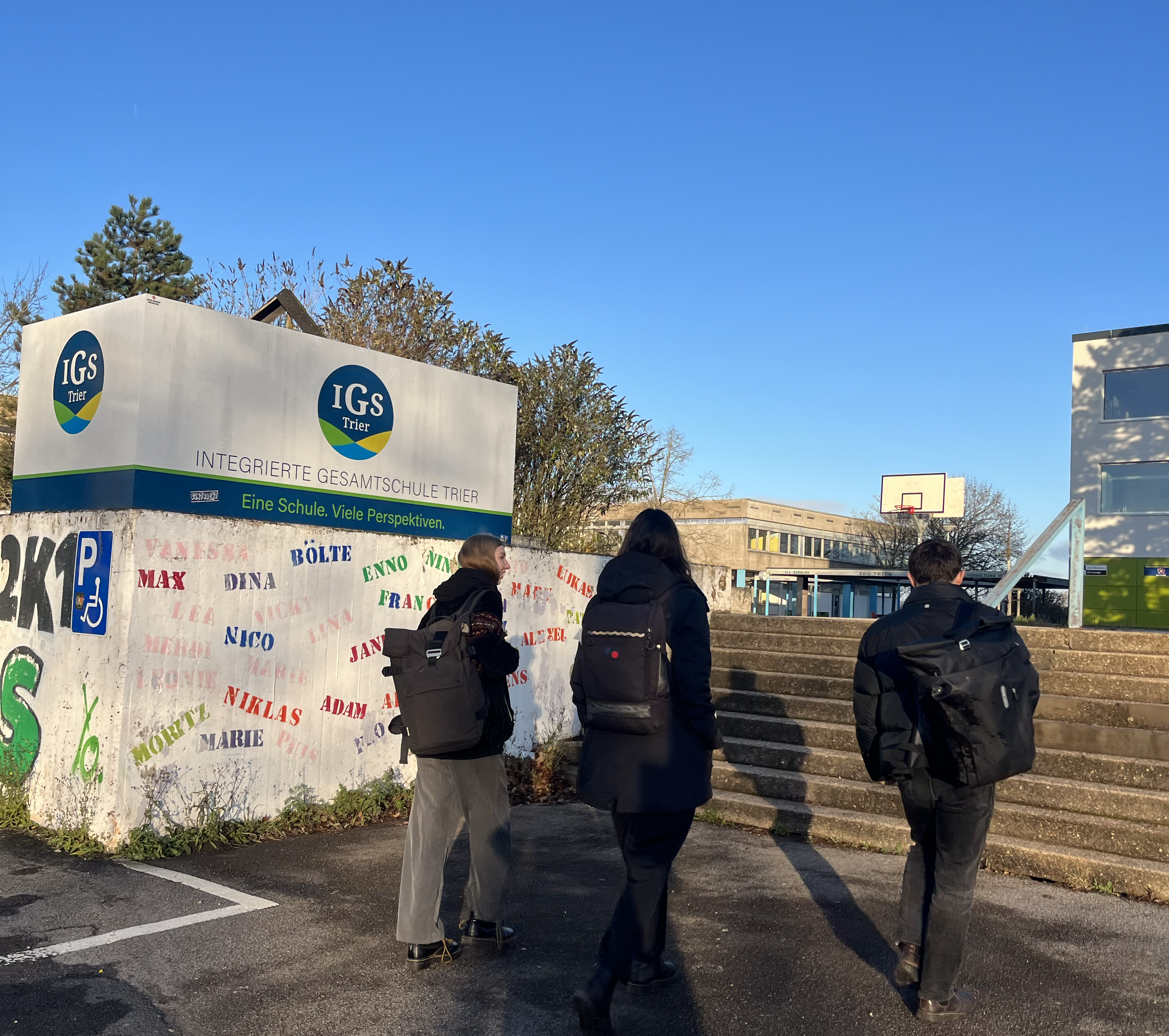 Mit beiden Schulen haben wir uns wenige Wochen zuvor schon zu Online-Workshops getroffen. Los ging’s also für das aula-Team von Berlin quer durch’s Land nach Trier.